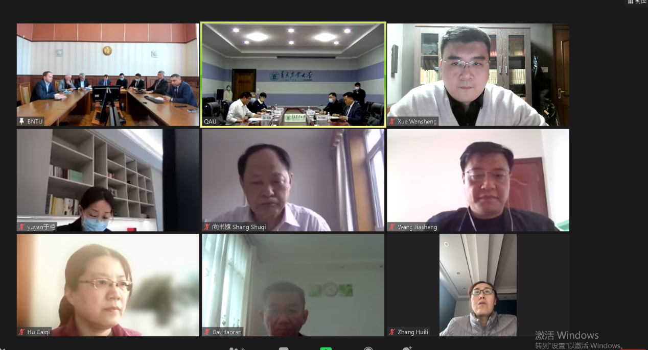 白俄罗斯国立技术大学副董事长、国际处、机械制造系主任、计算机系主任、机械工艺系副主任、能源系副主任以及欧亚发展有限公司代表侯亚波;beats365唯一官网入口官网国际合作交流处处长许颖、副处长罗小勇、处长助理杜鹍;国际田间试验机械化协会主席尚书旗、公司党委书记焦磊以及农机、机制、电气、农电、测控五个专业负责人参加了线上会议。