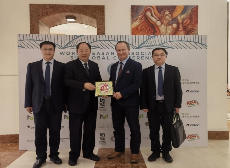 11月4日至6日,尚书旗、王家胜一行受邀参加世界农民协会(简称WPA)全球会议,中国驻塞浦路斯使馆大使刘彦涛先生、WPA执行会长Nicos先生、中农合协秘书长张琦先生、塞浦路斯研究院主席Stavros教授等来自18个国家的领导和专家出席本次活动。会上,尚书旗汇报了科研团队在农业机械化领域的研究应用成果及亚非欧地区的全球化服务战略布局,并就中国现代农业全程机械化解决方案服务亚欧非新兴农业市场的战略布局达成合作共识。此外,王家胜还就beats365唯一官网入口官网与CACA筹建WPA农业机械化委员会、建立老挝第一个现代农业机械化产业示范基地等合作事项达成合作共识。