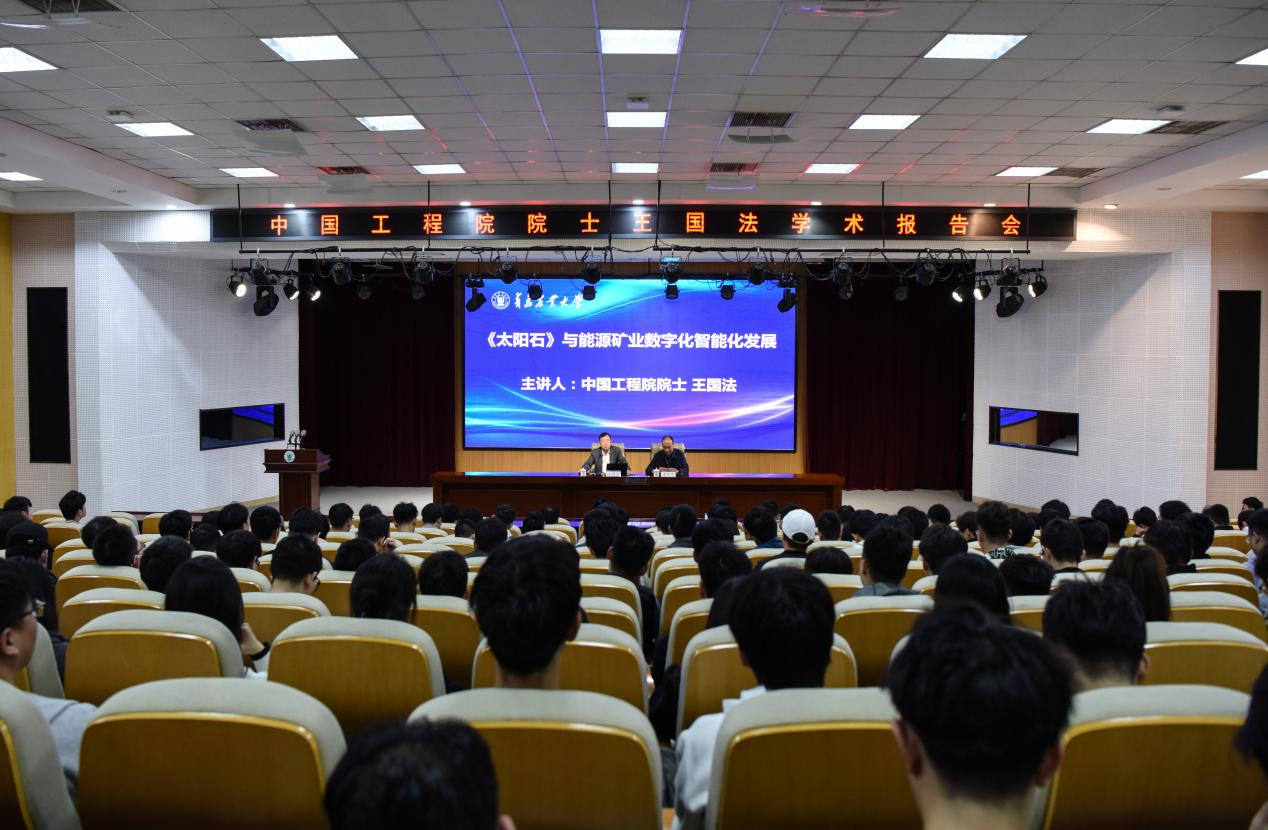 报告会上,孟晓军详细介绍王国法院士能源矿业数字化智能化科研成果。王国法院士作了题为《<太阳石>与能源矿业数字化智能化发展》学术报告。他从地质学、采矿学、煤化学等多学科融合视角,系统介绍煤炭勘探与开发、清洁利用和转化、矿区生态保护与修复等科学知识。他表示,中国在“双碳”目标的驱动下如何推动煤炭产业实现数字化智能化开采,已成为当前能源行业发展的重中之重。推进煤炭产业数字化、绿色化转型的路径,已成为我国煤炭工业高质量发展的必然选择。最后,王国法院士结合自身求学科研经历号召新时代青年老员工要把科研能力提升的重心放在原创能力的培育上,善于在科学研究“无人区”“前沿区”找到突破口,获取更多“0到1”的原创成果,并勉励同学们厚植家国情怀,弘扬以报国为民为内核的科学家精神,努力成为堪当强国建设、民族复兴大任的栋梁之才。