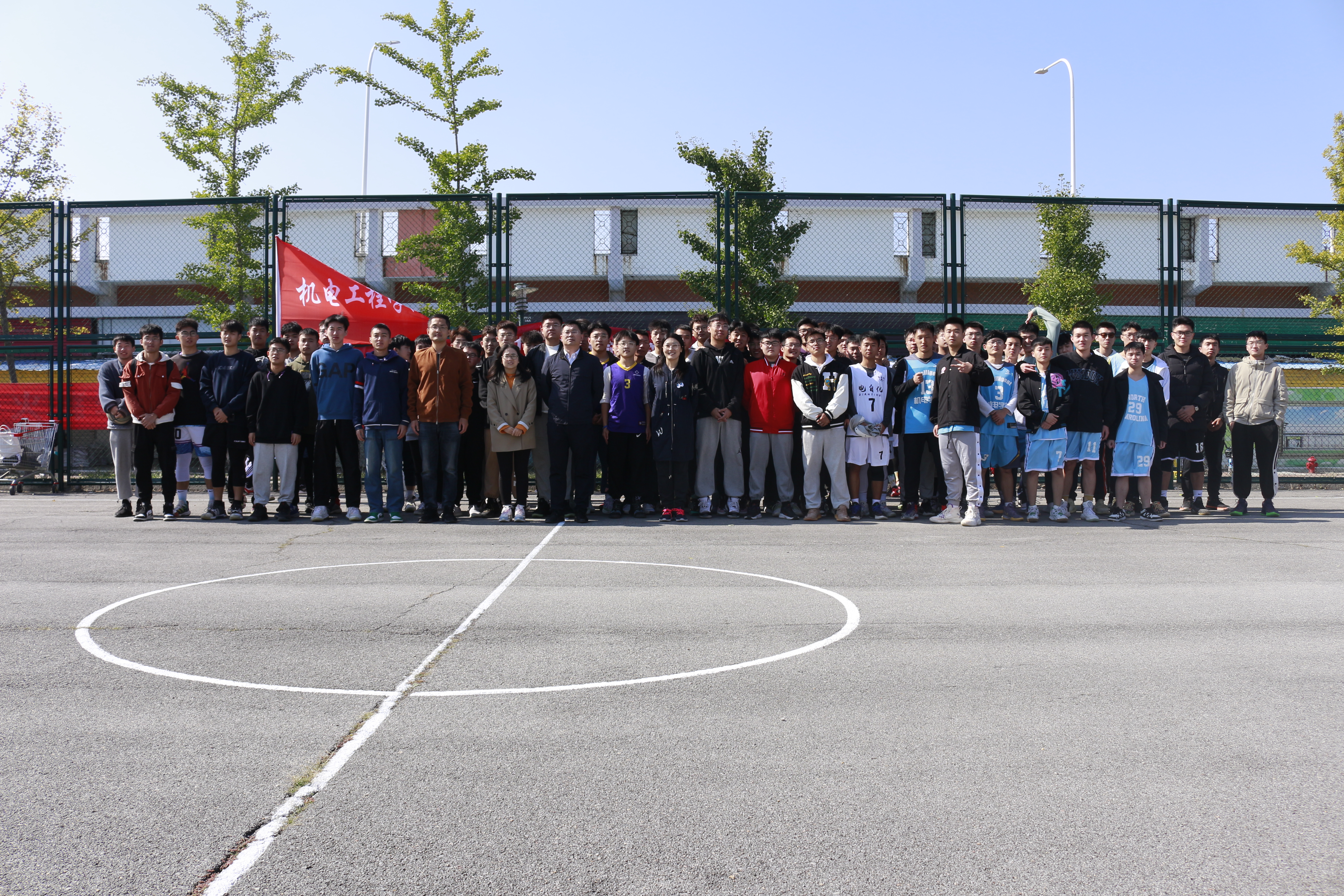许菲菲致开幕词,她号召机电学子们团结合作,奋力拼搏,赛出风格,赛出水平,赛出友谊,并预祝比赛圆满成功。裁判员代表牛嘉乐、运动员代表耿子豪宣誓,表明了全体裁判员公平公正执裁的态度,展现了全体参赛队员积极向上的精神风貌。随后,刘一江宣布第十七届“章鼓杯”篮球赛正式开赛,姜鲁平亲自为比赛开球。本届“章鼓杯”篮球赛共有11支代表队参加。在9天赛程中,将有110余名同学参与到该项赛事。