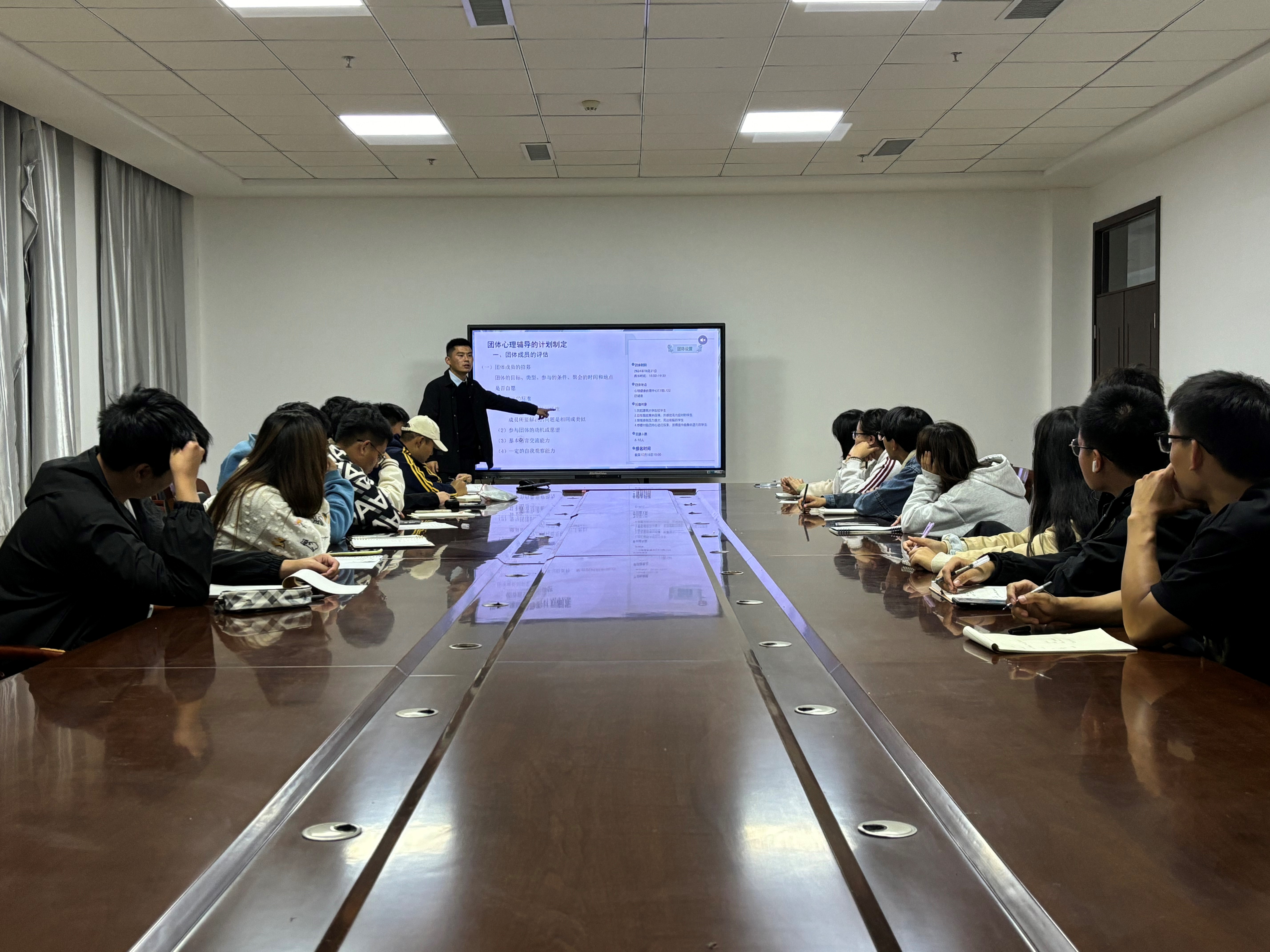 培训中,迟名龙从团体心理辅导的定义、理论基础、促成因素、制定计划、注意事项等方面,详细介绍了如何开展班级团体心理辅导,并强调心理委员采用朋辈心理辅导的方式,运用一定的专业知识和生活经验进行同龄人之间的心理互助和激励,是很重要且容易被同学们接受的心理辅助方式。最后,辅导员唐靓表示,心理委员要学以致用,利用掌握的专业技能,在开展团体辅导活动时及时发现情绪等异常员工,协助公司更好地帮助心理危机员工。