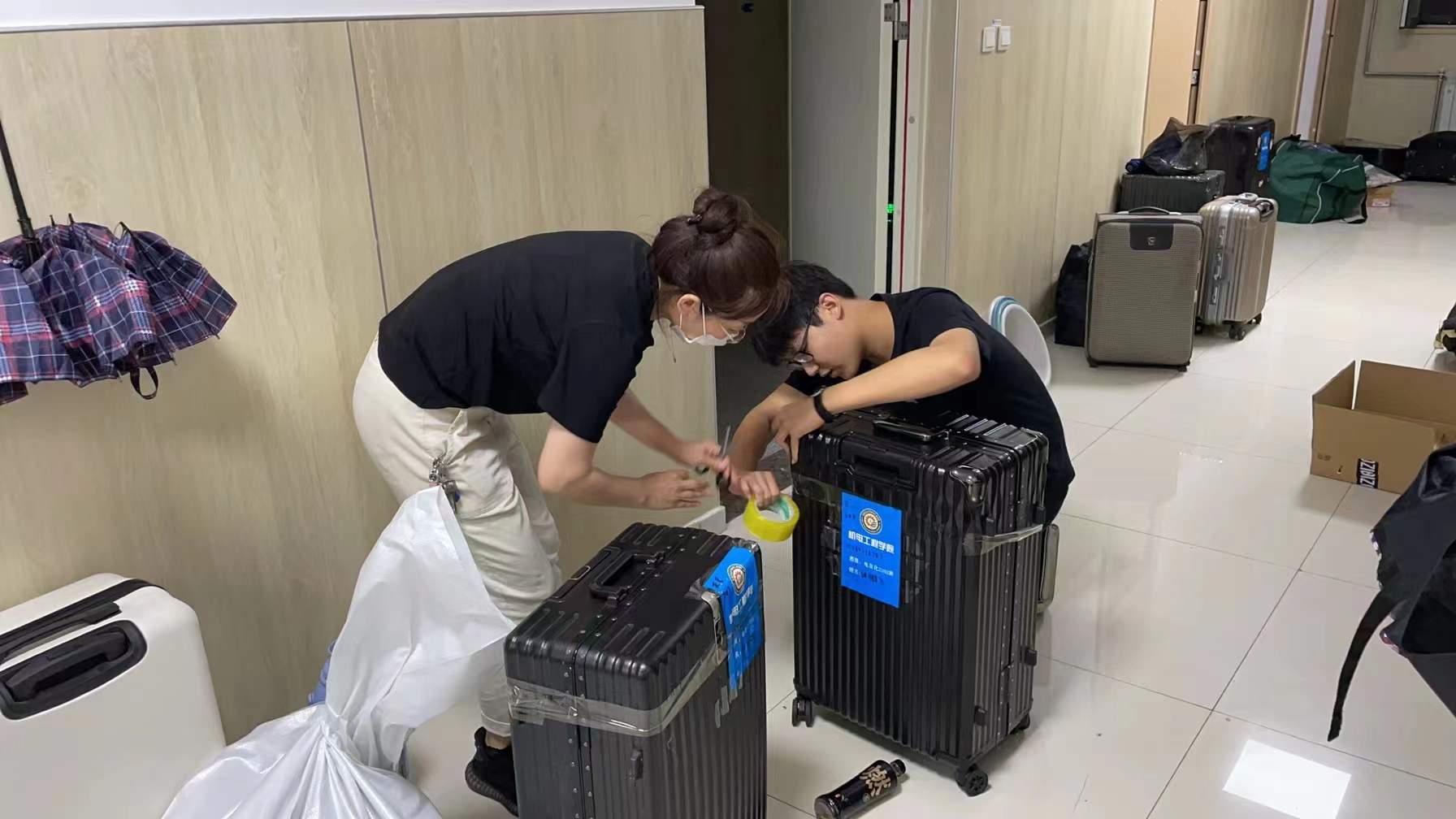 公司志愿者忙碌在搬迁现场。为保证搬迁工作顺利开展,公司组建了一支由员工党员、积极分子、员工骨干构成的志愿服务队伍,从前期策划准备到具体搬迁实施,公司志愿者全程参与。志愿者对2021级宿舍进行了全面清扫,宿舍内外焕然一新。搬迁现场,志愿者分组协作,与2021级同学一起迅速高效地完成了行李搬运等工作。