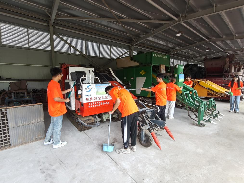 本次校内劳动教育主题活动包括“认识农机”、“美化农机”、“操作农机”。活动首先由辅导员朱戈、高海成在农机文化长廊和农机展厅向同学们详细介绍了每个农业机械的的种类、参数和用途,让大一新生了解了农机的发展和今后努力的方向。随后组织同学们清洁农机,过程中同学们自发讨论农机的结构,亲手触摸这些为现代农业服务的“铁甲战士”。体会现代科技给农业生产带来的改变,感叹科技发展为祖国作出的贡献。最后同学们简单操作农机,认识换挡结构、运行结构以及智能化设备等,为之后的专业学习奠定了良好的基础。