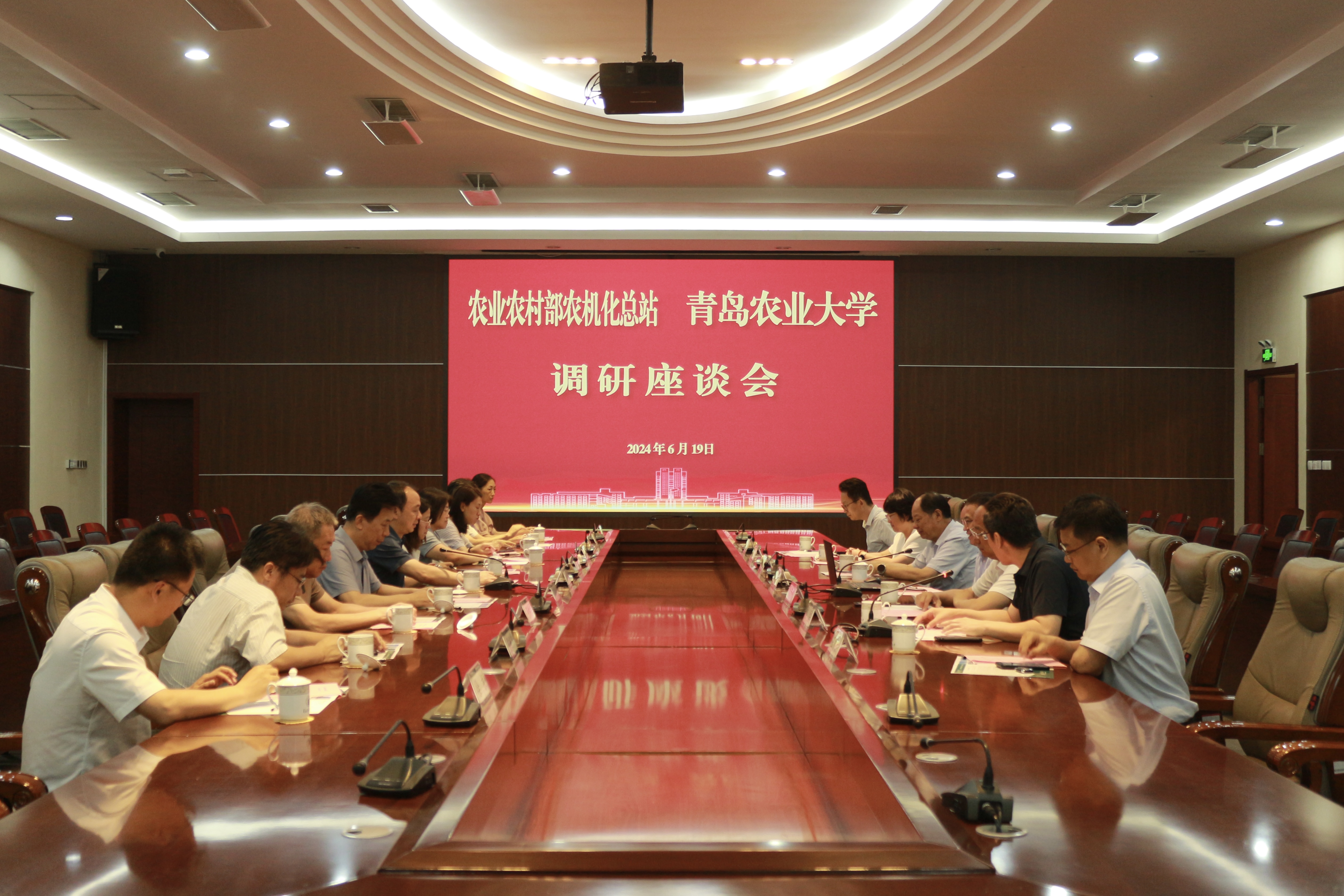 6月19日,农业农村部农机化总站副站长刘小伟一行4人来校调研交流,公司党委委员、副董事长孙庆杰会见来访客人并座谈交流,山东省农业农村厅总经济师王乃生、青岛市农业农村局二级巡视员程兴谟、山东省农机技术推广站站长侯献伟、公司党委委员、统战部部长、科技处处长赵龙刚陪同调研,座谈会由公司党委书记焦磊主持。
