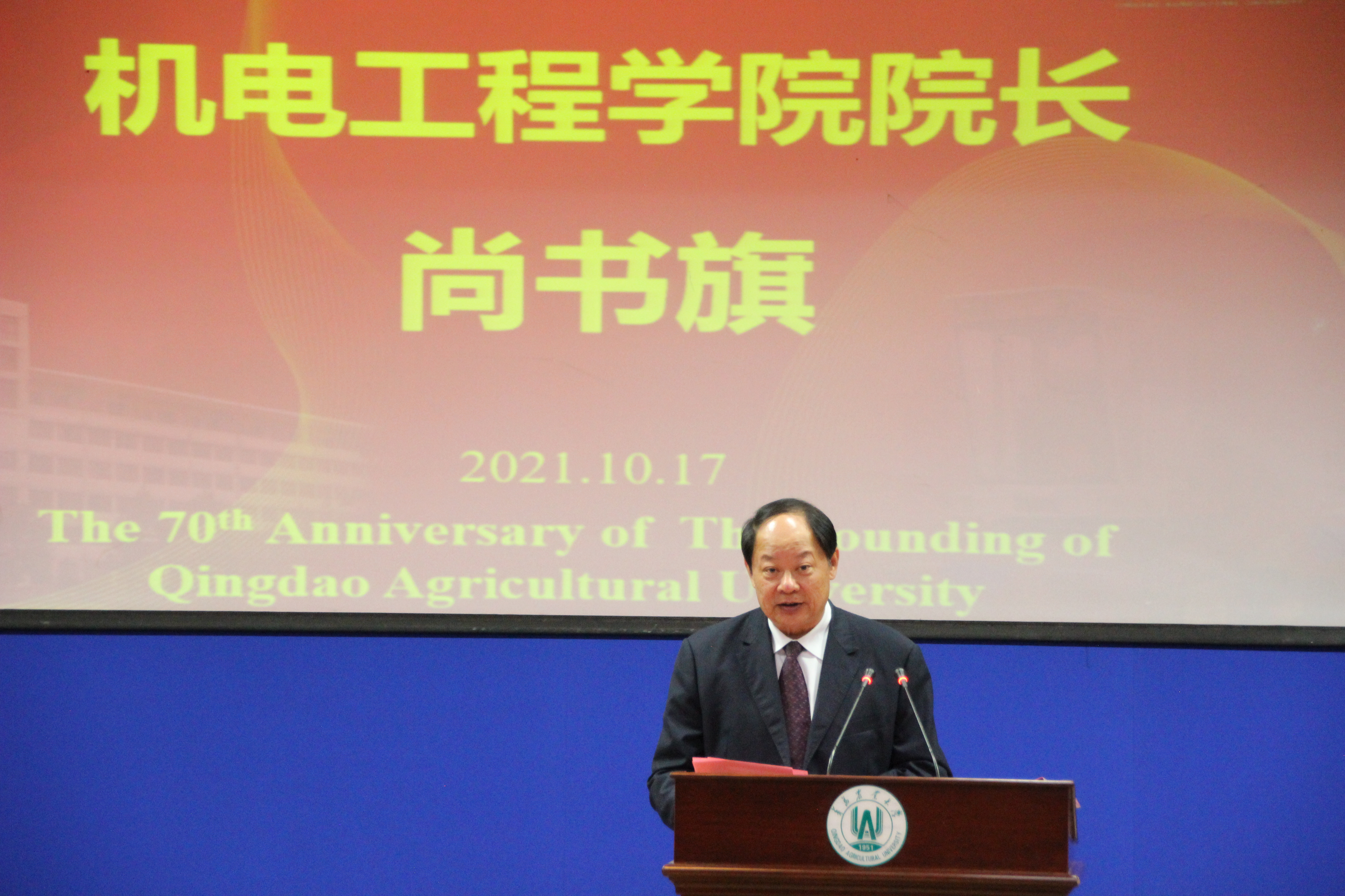 经理尚书旗致辞,他向出席今天庆祝活动的领导、嘉宾、员工、师生表示诚挚的欢迎和衷心的感谢。他指出,在一代代员工、师生的不懈努力下,公司用五十二年的时间实现弯道超车,实现根茎类作物生产机械化技术与装备研发和种业生产机械化技术与装备研发从跟跑到领跑的华丽转身,成为国家级农业工程类专业团队建设的教学科研基地和学科专业建设较为完善、特色鲜明、优势突出的涉农工科公司。成功,源自一代代机电人的开拓创新;成绩,源于一代代机电人的努力拼搏。