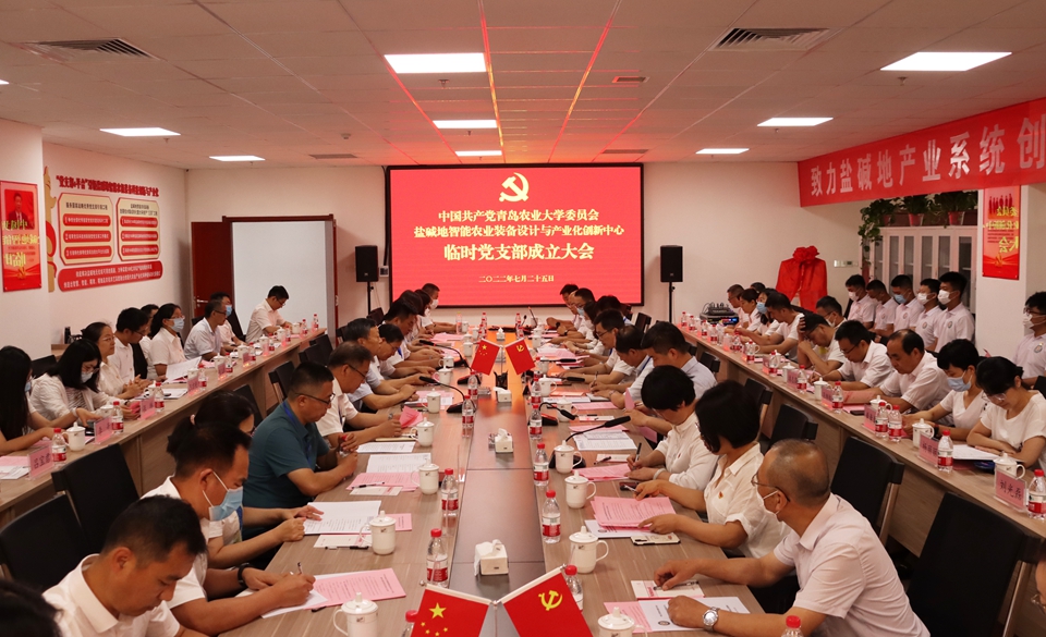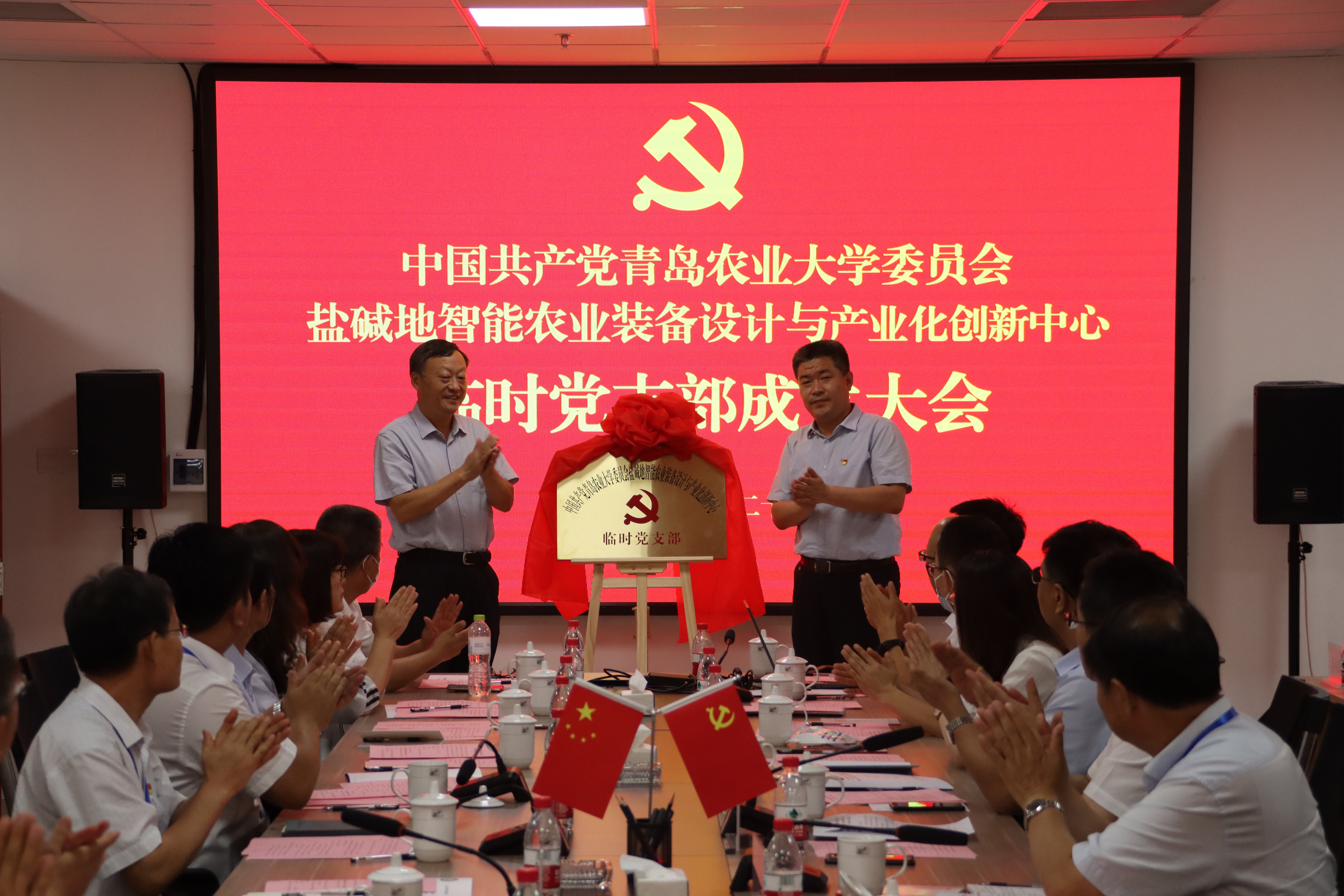 成立大会上,张建民和初磊共同为盐碱地智能农业装备设计与产业化创新中心临时党支部揭牌。初磊向临时党支部的成立表示热烈祝贺。他指出,临时党支部以“支部建在平台上”为抓手,这是对党的优秀传统“支部建在连队上”的传承和创新,是党建和业务系统谋划、一体推进、双促双高的有力探索,是高水平党建引领高质量发展的有力途径,同时是落实习近平总书记“给农业现代化插上科技的翅膀”的重要实践。临时党支部的设立势在必行,有其现实和未来的重要意义。他对党支部下一步工作提出了四点建议:一是要构建适合中心支部的党建体系;二是要营造具有中心特色的党建文化;三是要党建工作与中心工作有机结合,创建党建品牌;四是要提升党建工作效益,在社会效益、经济效益、产业效益上体现农大担当和作为。希望党支部以双创建设为目标,发挥以点带面的引领带动作用,推动黄河国家重大战略实施落地,以实际行动向党的二十大献礼。