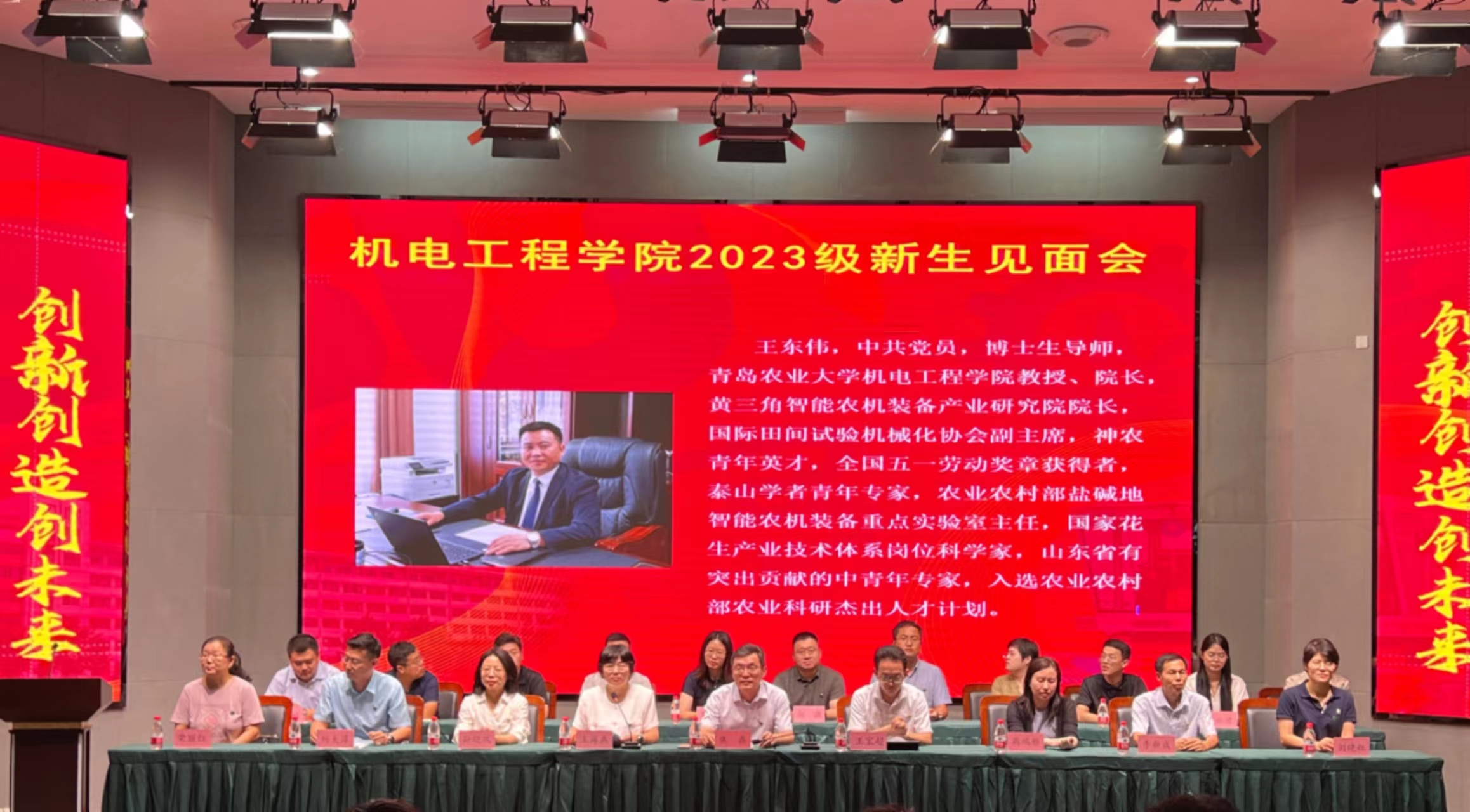 会议伊始,王海燕向2023级新同学们的到来表示了热烈的欢迎,并对2023级新同学在军训汇报展演评比中获得“新生军训先进公司、队列训练先进公司、内务训练先进公司”的优异表现表达了衷心的祝贺。随后,公司2003届优秀员工代表、青岛海瑞迪电气有限公司总经理杨大淳以“襟怀家国勇担当·创新创造创未来”为主题分享自己十余年的创业史,祝愿2023级新同学们只争朝夕,不负韶华,乘风破浪,勇攀高峰。2021届优秀毕业生代表、山东农业大学博士研究生常增村从领导恩师的支持、扎实的专业功底、精诚的团队协作、坚持不懈的精神四个方面分享漫漫求学路上的酸甜苦辣,鼓励同学们潜心学习、勤于实践、赋能成长。