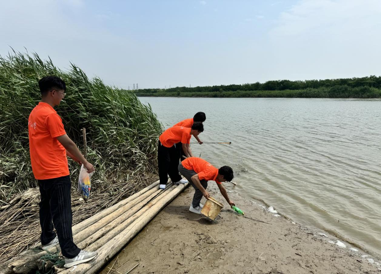 实践服务团前往位于丁庄街道支脉河508省道与003乡道交汇处以西的河段,开展了清河护河行动。期间,实践服务团手持清洁工具,对堤坝滩涂垃圾、河面漂浮物及藏匿在草丛中的杂物进行了清理,堤坝环境得到了明显改善,河道面貌焕然一新,也进一步增强了实践服务团对保护黄河、保护环境重要性的认识。实践服务团在清河护河行动结束后,继续实地走访农户,宣传黄河保护基本知识,累计入户百余家,用自己的实际行动做爱河护河的践行者,营造周边村落保护黄河的良好氛围。
