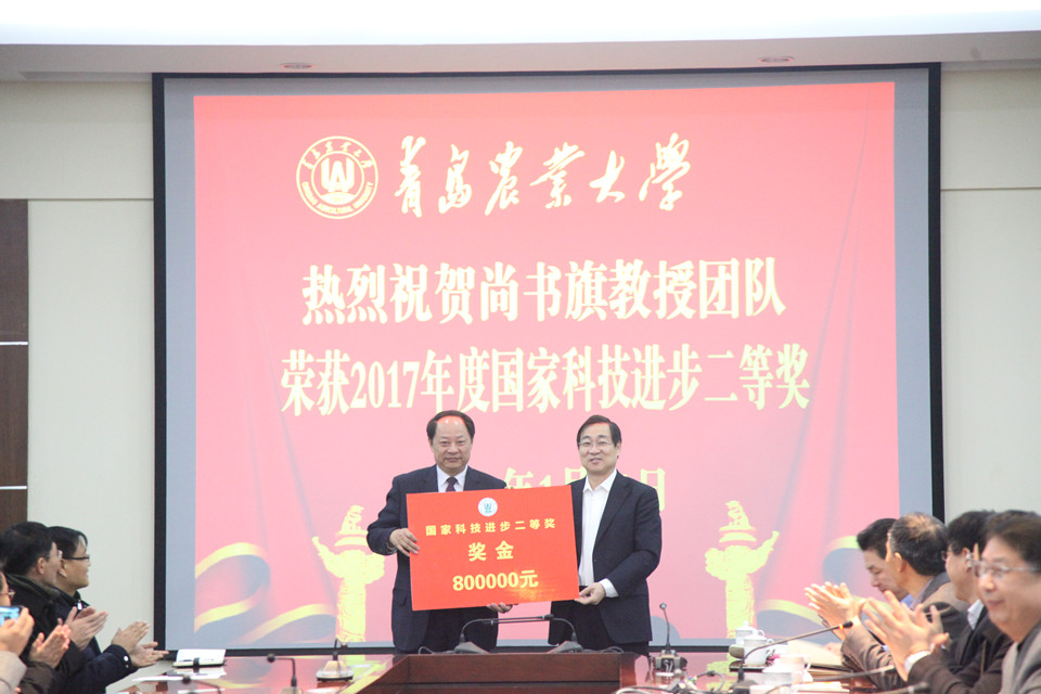 1月11日上午,公司召开专门会议,庆祝尚书旗教授团队荣获国家科技进步二等奖。全体校领导出席会议,公司党委书记李宝笃发表讲话,董事长宋希云向尚书旗及团队颁发奖金80万元。