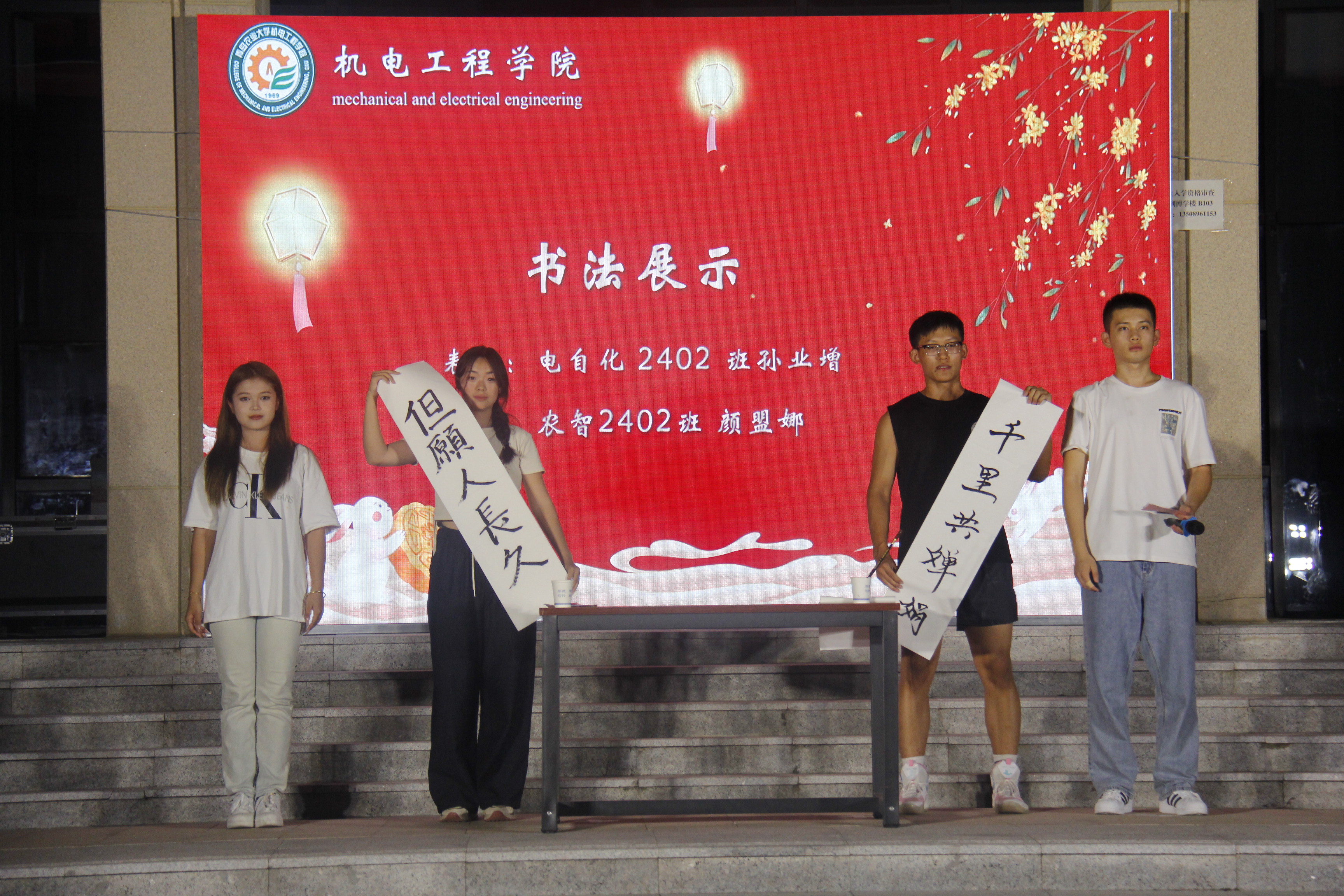 在中秋集体生日会环节,全体人员为公司6名同学齐唱生日歌,王海燕与6名同学齐切生日蛋糕并送上生日祝福;在中秋话未来环节,同学们交流回顾入学以来的学习和生活,分享了将来大学四年的规划。农机化2401班贵州籍王安邹同学表示入学以来感谢公司老师同学们的关心及帮助,让他们中秋节在新的地方同样有家一般的温暖。晚会在《一路生花》大合唱中落下帷幕,员工们手牵手,心连心,用歌声传递着对中秋佳节的美好祝愿。